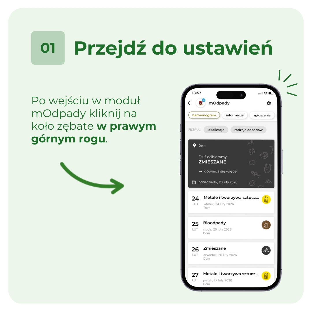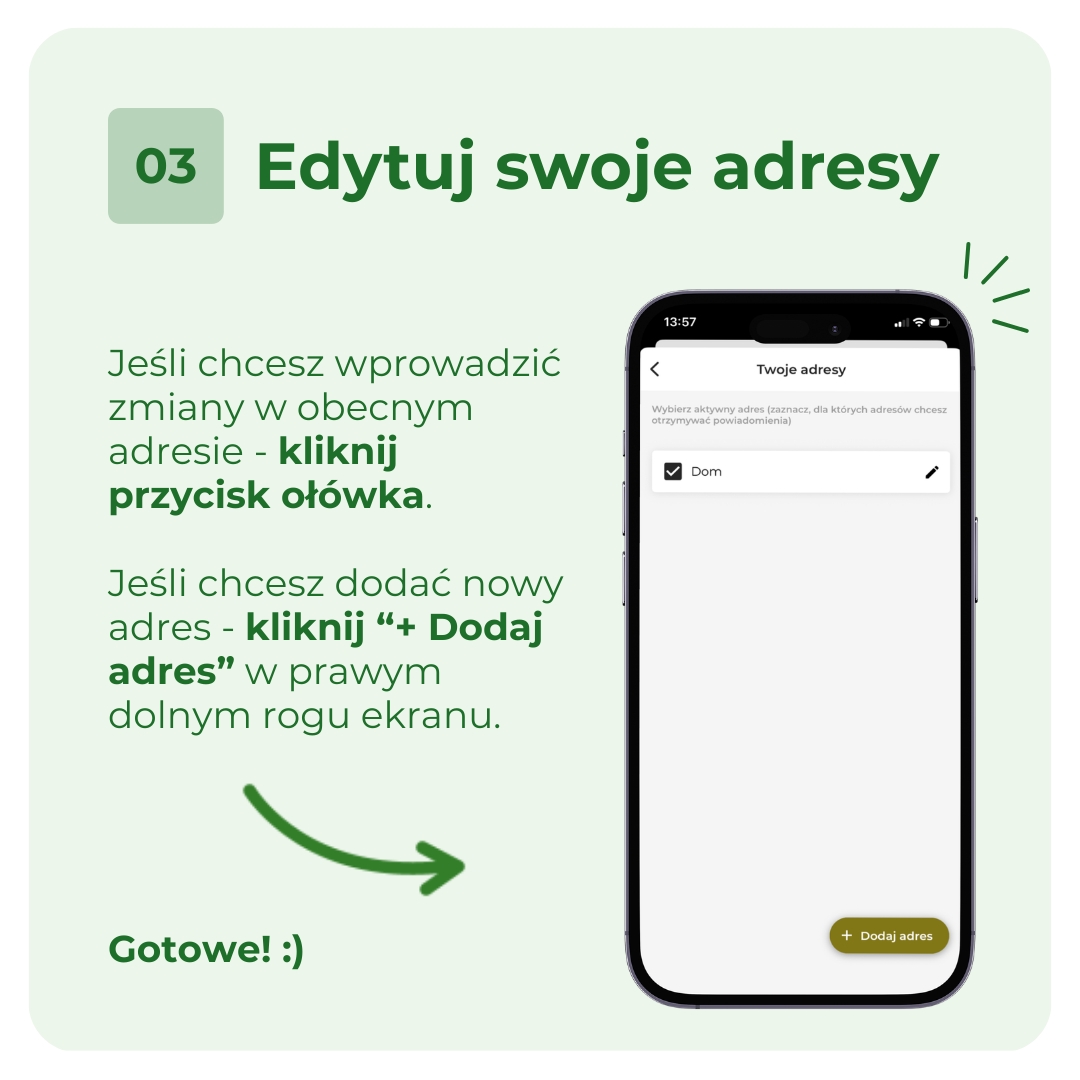 - Wejdź w moduł mOdpady, dodaj swój adres i ...