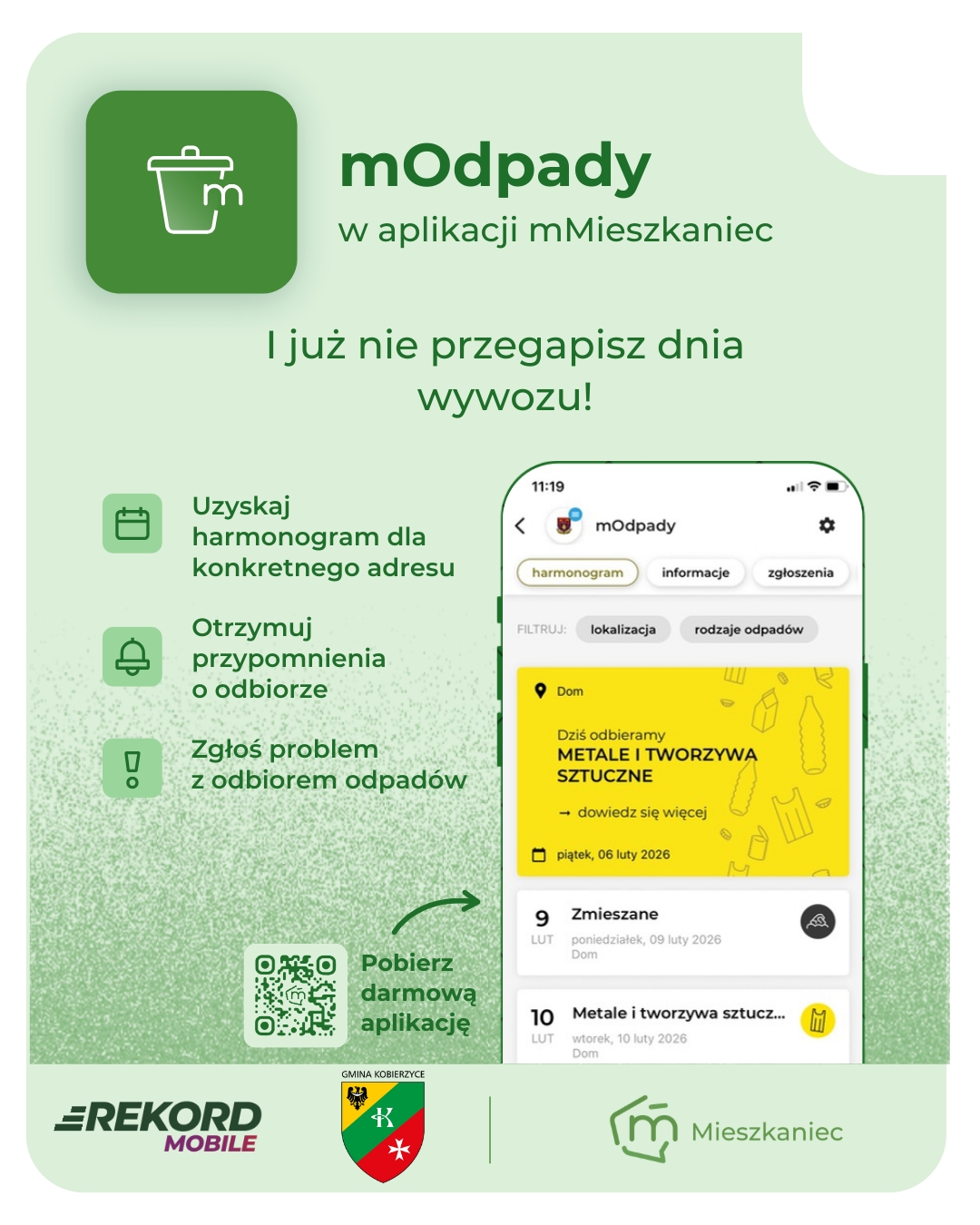 Teraz wszystko, co musisz wiedzieć o wywozie śmieci w gminie Kobierzyce, masz zawsze pod ręką - w swoim telefonie i w jednej aplikacji!